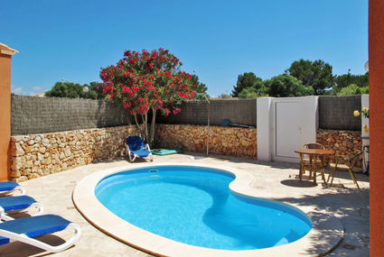 Situation: residential area El Paraiso/Sa Vinyola, suburbian area. Access/parking: parking on the road near the house. Estate (private use): approx. 210 m², closed plot (hedge, wall), flagged floor. Outdoor facilities(private use): terrace 6 m² (roofed), further terrace 10 m², balcony, furnishing provided. Pool (private use): 6.3 x 3.0 m, open throughout the entire season, curved shape. Pool area: tiled, 4 sun loungers, external shower. ● Distances: Center Sa Rápita in approx. 2.5 km Campos in approx. 11 km Palma in approx. 42 km, Next supermarket in approx. 2.5 km, Airport Palma in approx. 37 km, Sea in approx. 2.8 km Sandy beach in approx. 4.5 km (Es Trenc).Availability