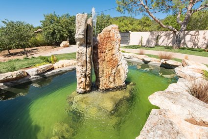 Biniamar: Large, very beautiful villa "Son Biniamar", 2 storeys, built in 2016, surrounded by trees. Outside the resort, in a quiet, sunny position, 3 km from the edge of the forest, 30 km from the sea, 30 km from the beach, in the countryside. Private: natural state property, garden with lawn and flowers, pond, swimming pool angular (8 x 5 m, depth 150 - 150 cm, seasonal availability: 01.Jan.-31.Dec.). Outdoor shower, patio, pergola, garden furniture, barbecue (slide, swing). In the house: internet access, WiFi, storage room for bicycles, central heating system, air conditioning, washing machine, tumble dryer. 50 m long narrow motor access. Parking at the house on the premises. Shop 6 km, grocery 2 km, supermarket 6 km, shopping centre 30 km, restaurant 2 km, bar 2 km, bakery 4 km, café 2 km, pedestrian zone 4 km, bus stop "en la localidad de Biniamar" 2 km, railway station "en Inca" 6 km, sandy beach 30 km pebble beach 30 km, shingle beach 30 km, rocky beach 30 km. Sports harbour 30 km, marina 30 km, golf course (18 hole) 30 km, surf school 30 km, sailing school 30 km, tennis 6 km, riding stable 6 km, sports centre 6 km, cycle lane 2 km, children's playground 2 km. Please note: car recommended. Suitable for families, suitable for seniors. Object suitable for 6 adults groups of teenagers on request only. The owner does not accept any youth groups. Loading and unloading of baggage is possible at the holiday house.