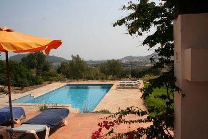 The property in Northwest Mallorca is a rustic farmhouse and the swimming pool surrounded by lawnAvailability