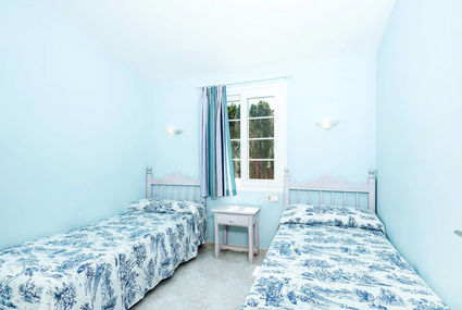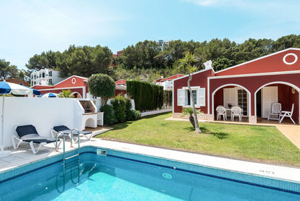 Semi-detached house "Villas Galdana Palms". 300 m from the centre of Cala Galdana, 8 km from the centre of Ferreries, 26 km from the centre of Ciutadella, 800 m from the sea, in a cul-de-sac. Private: property 200 m2, garden lawn, swimming pool (6 x 4 m, 01.05.-31.10.). Terrace, garden furniture. Stepped path (33 steps) to the house. Public parking on the road. Shop 300 m, supermarket 500 m, sandy beach 800 m. Please note: car recommended.Availability