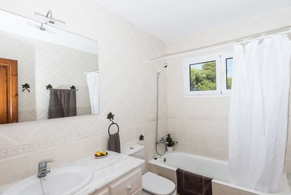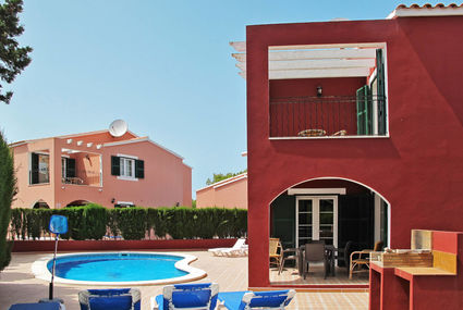 Holiday development "Villas Gala Galdana". 9 houses in the resort. 500 m from the centre of Cala Galdana, 8 km from the centre of Ferreries, 26 km from the centre of Ciutadella, 700 m from the sea. For shared use: property. Private: property 180 m2 with wildlife garden, swimming pool kidney shaped (7 x 4 m, depth 100 - 170 cm, 15.04.-01.11.). Outdoor shower. In the house: WiFi. Public parking on the road. Shop 500 m, restaurant 300 m, ferry "Ciutadella" 26 km, sandy beach 700 m. Please note: the photograph shows a typical example.Availability