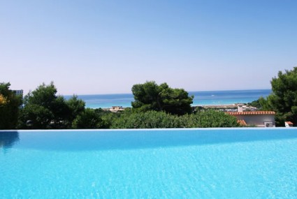 Villa with spacious and well furnished terraces and a rectangular overflowing pool, which is accompanied by a jacuzziAvailability