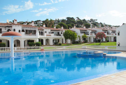 Situation: suburbian area, holiday village. Access/parking: parking outside the holiday complex. Estate (shared use with holiday guests): with plants, with garden, well-kept, lawn, palm trees. Pool (shared use): 15.0 x 10.0 m, open throughout the entire season, curved shape, children's pool. Pool area: sun loungers (payment), external shower. Infrastructure: Restaurant. Exterior (private use): Plot description: terrace 8 m² (partially roofed), balcony 3 m² (roofed), furnishing provided. ● Distances: Center Son Bou in approx. 600 m - 900 m. Alaior in approx. 7 km. Mahon in approx. 20 km. Next supermarket in approx. 250 m. Airport Mahon in approx. 20 km. Sea in approx. 250 m. Sandy beach (via footpath) in approx. 400 m - 700 m.Availability